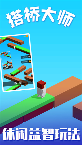 搭桥大师是一款由南昌丹机网络科技有限公司开发的休闲益智类跑酷游戏。在这款游戏中,玩家需要运用敏捷的反应能力,通过点击或长按屏幕来移动木头,快速搭建桥梁,帮助角色安全通过关卡。游戏包含上百个精心设计的原创关卡,每个关卡都带来全新的挑战和乐趣。玩家在闯关过程中需要时刻注意角色的平衡,稍有不慎就会掉落导致失败。此外,游戏还加入了多人竞技元素,你可以与其他玩家比拼搭建速度,率先到达终点即可解锁全新跑酷角色。简单易上手的操作搭配丰富多样的玩法,让这款游戏成为休闲娱乐的绝佳选择。