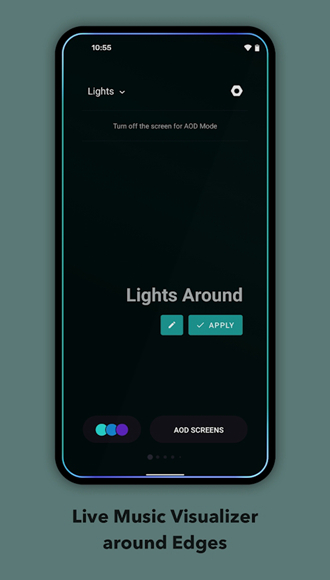 MuvizEdge最核心的功能是音频可视化,设置方法很简单:首先进入EdgeLighting设置,开启MusicOverlay和AODMusic功能,然后根据个人喜好调整相关参数。设置完成后,每当播放音乐时就会自动显示可视化效果,为听歌体验增添视觉享受。