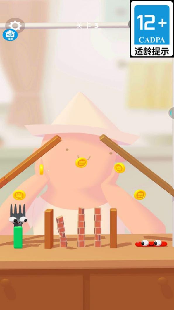 游戏开始时玩家将从关卡1开始冒险,系统会提供详细的操作指引。在这个关卡中,玩家需要使用叉子精准地叉起香肠,完成关卡任务即可获得丰厚的金币奖励。随着关卡的推进,在关卡2中继续使用叉子叉香肠时,如果操作得当会出现"完美"提示,这时不仅能获得更多金币奖励,还能解锁全新的游戏地点。每当完成一个关卡后,系统会显示"已完成"提示,玩家可以点击醒目的红色箭头按钮,前往新解锁的地点继续挑战后续关卡。在关卡3中,场景布置会发生变化,虽然仍需使用叉子叉香肠,但完成操作后会触发炫目的彩色纸屑特效,让玩家在积累金币推进游戏进程的同时,也能享受到视觉上的愉悦体验。