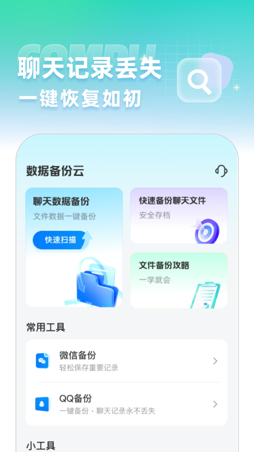 聊天记录数据备份云——您的聊天守护小助手!一键扫描,快速备份微信和QQ聊天记录;历史数据自动保存,随时查看不费力。附带简单备份指南,助您轻松操作。让重要对话安全无忧,数据丢失说拜拜!