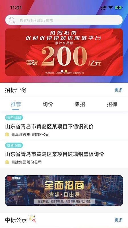 优材优建App是建材行业领先的专业线上招标平台,致力于为建材供应商与采购商搭建高效、透明的招投标对接桥梁。作为行业数字化转型的推动者,平台通过智能化的招投标管理系统,显著提升建材行业的交易效率,帮助企业降低30%以上的运营成本。平台严格筛选入驻企业资质,确保每笔交易都符合行业规范,目前已成为国内建材招投标领域最具公信力的第三方服务平台之一。