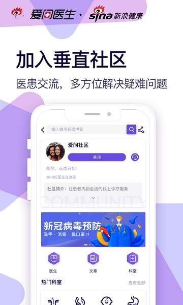 爱问健康是国内顶尖的互联网医疗服务平台,汇聚了近10万名微博认证健康专家及专业医疗团队,累计服务超过2000万用户。平台提供包括在线问诊、门诊预约、健康科普等多元化服务,覆盖25个主要临床科室。依托新浪强大的技术支持和资源整合能力,平台致力于打造"互联网+医疗健康"的创新模式,让优质医疗资源突破地域限制,为用户带来更便捷、更高效的健康管理体验。平台还定期举办公益义诊活动,让更多人享受到专业医疗服务。