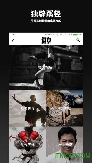 街力网(jetli.com)中文安卓移动版应用现已全面升级!新版本优化了用户界面设计,提升了浏览体验;增加了更多个性化推荐功能,让你更容易发现感兴趣的内容;同时改善了社交互动功能,让交流更加便捷顺畅。我们持续更新丰富的功夫资讯和教学资源,确保用户能够获取最新、最专业的功夫知识。未来,街力还将推出更多创新功能,为用户带来更精彩的功夫体验。