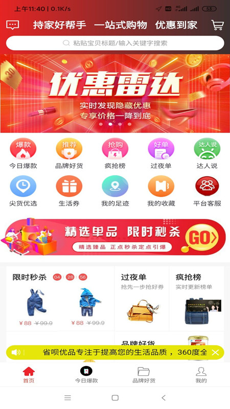 爆品秒杀专区:每天定时推出特价商品,搜罗全网低价优惠券商品,让您以最低价抢购心仪好物;