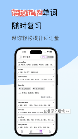生词可一键收藏至生词本,且支持跳转定位至原文语境,通过上下文加深记忆,拒绝孤立背单词。独创的"语境回溯"功能让单词记忆更高效,帮助用户建立词汇与真实场景的深度关联。