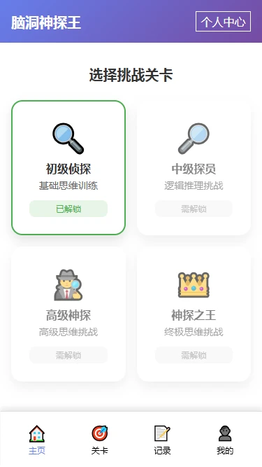 这是一款超有趣的思维挑战游戏,带你进入侦探世界,破解层层谜题!从初级侦探到中级探员,再到高级神探,最终成为神探之王,每一关都充满惊喜与挑战!