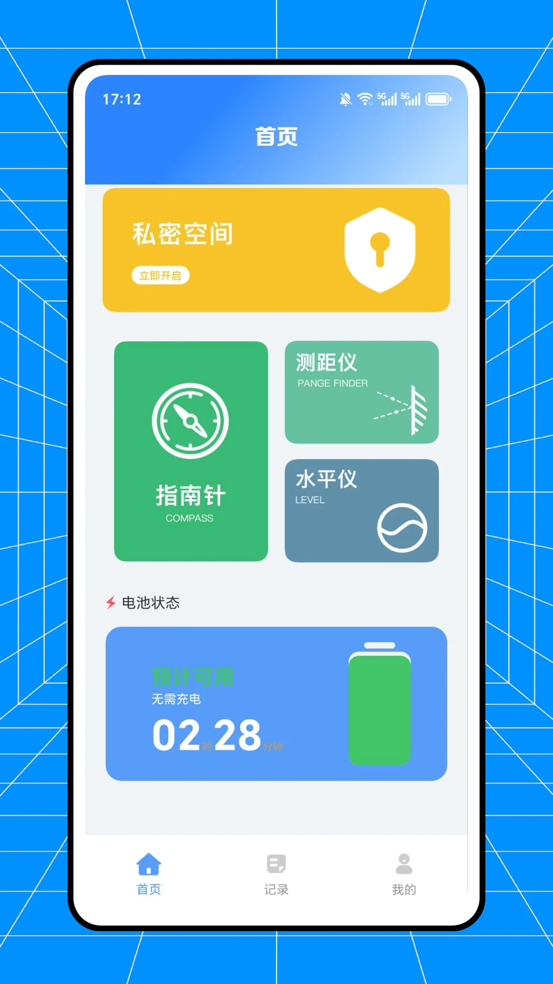 水平仪功能:检测物体水平状态,方便用户进行家具摆放或设备安装。