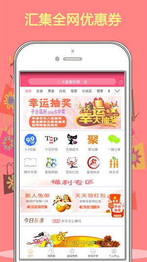 智能搜索:用户可以通过关键词快速搜索商品,一键直达优惠页面,购物过程省时省力,省钱更轻松。