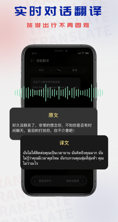 泰文翻译app是一款功能强大且实用的语言翻译工具,无论您是在工作中需要快速翻译文件,还是在旅行时需要与当地人交流,都能为您提供便捷高效的翻译服务。这款app支持中文与泰语之间的双向互译,用户只需输入中文文本即可立即获得准确的泰语翻译结果。如果您觉得手动输入文字比较麻烦,还可以使用语音输入功能,只需对着手机说话,app就能自动识别并翻译成泰语,整个过程流畅快速,大大提升了翻译效率。