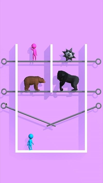 成功触发机关后,竖杆会从场景中消失,这时蓝色小人会自动向粉色小人移动。玩家需要确保所有障碍都已完全清除,为小人提供畅通无阻的通道。这个过程中,游戏会实时显示小人的移动路径,让玩家能够直观地看到自己的解谜成果。当两个小人终于相聚时,会触发温馨的互动动画,给玩家带来满满的成就感。