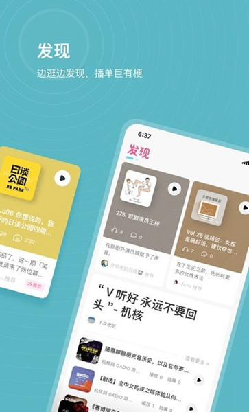 发现好内容,首页采用瀑布流展示形式,智能算法根据时段推荐不同风格内容,早晨推送轻快音乐,深夜则推荐舒缓故事;