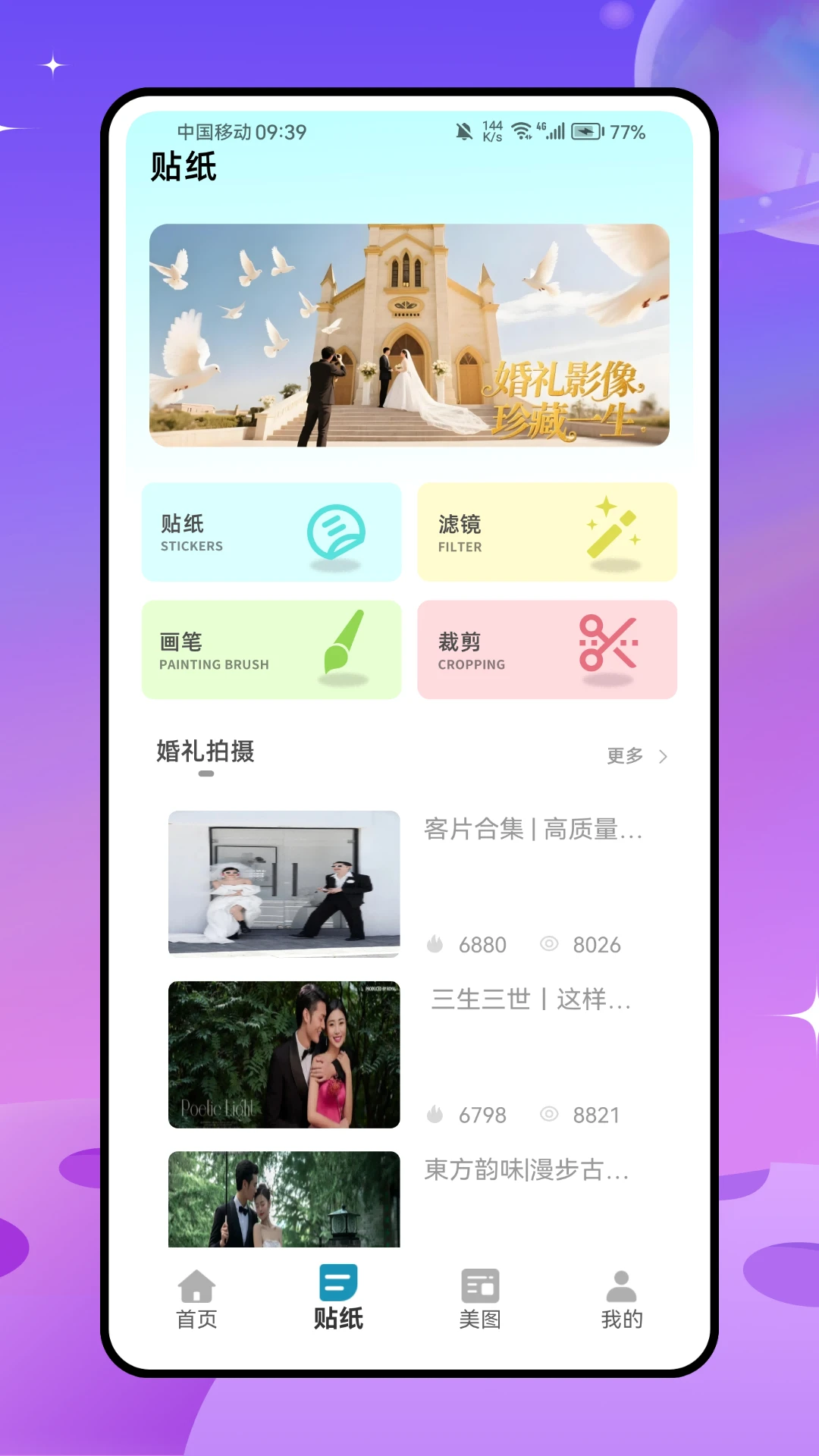 这是一款集拍照与修图功能于一体的小工具。在首页,不仅配备了拍照模版相机,还汇聚了丰富多样的实用小功能,像趣味贴纸、风格滤镜、创意画笔、灵活裁剪、精致美妆、个性拼图以及智能美颜等。此外,更有贴心的婚礼拍摄教程,助你轻松记录美好瞬间。