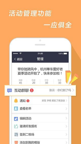建立专属好友圈,分享活动精彩瞬间。支持一键分享至微信、QQ、微博等主流社交平台,让邀请好友变得简单高效。