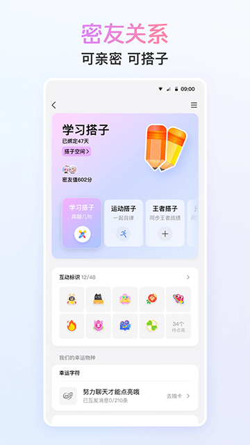 创新社交关系图谱,支持12种自定义亲密关系标签,新增学习监督、运动打卡等互动功能,让线上陪伴更有温度。