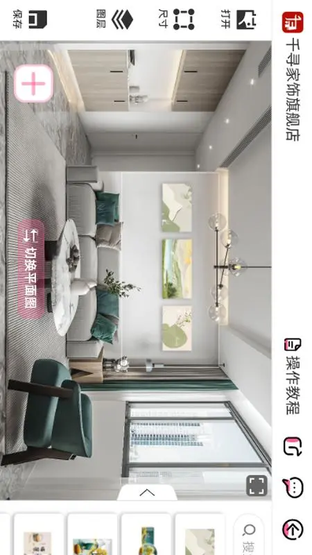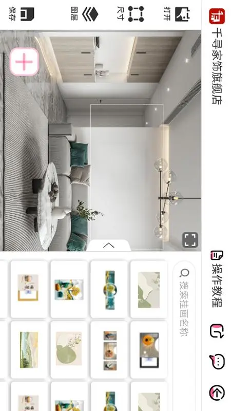 用户可选择不同图案与尺寸的墙挂产品,模拟其在当前家居场景中的效果,1:1还原上墙效果,使用户直观感受产品在家中的展示效果。