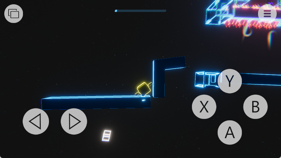 点击并长按屏幕"跳跃"按钮控制方块跳跃高度,松开按钮完成跳跃,目标为避开障碍并持续前进。游戏采用直观的触控操作,但需要精准掌握按压时间才能完成完美跳跃。随着关卡推进,障碍物的排列会越来越复杂,考验玩家的反应速度。