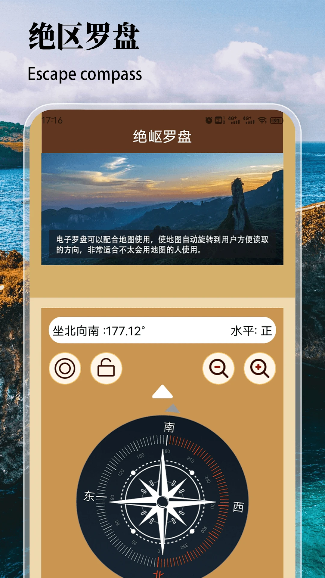 全球绝地探索:软件内置全球多个绝地的详细信息,包括地理位置、特色景观等,让用户足不出户也能领略世界奇观。绝岖罗盘:提供精准的方位指示和水平校准功能,帮助用户在户外快速定位,确保行进方向正确。