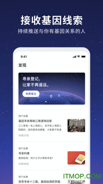 提供了最强大的寻亲服务,通过这个服务可以帮助失踪的人口快速找到家人,系统覆盖全国范围的基因数据库;