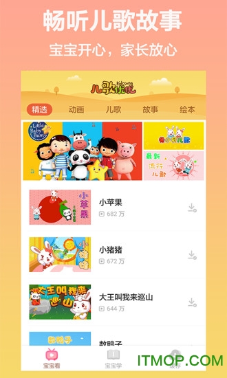 精选中英文流行儿歌、经典儿歌、哄睡儿歌、亲子儿歌,涵盖认知、语言、音乐等多个领域。每首儿歌都配有生动动画,帮助孩子理解歌词内容,培养音乐感知能力。儿歌库持续更新,让孩子享受最新最优质的音乐启蒙。