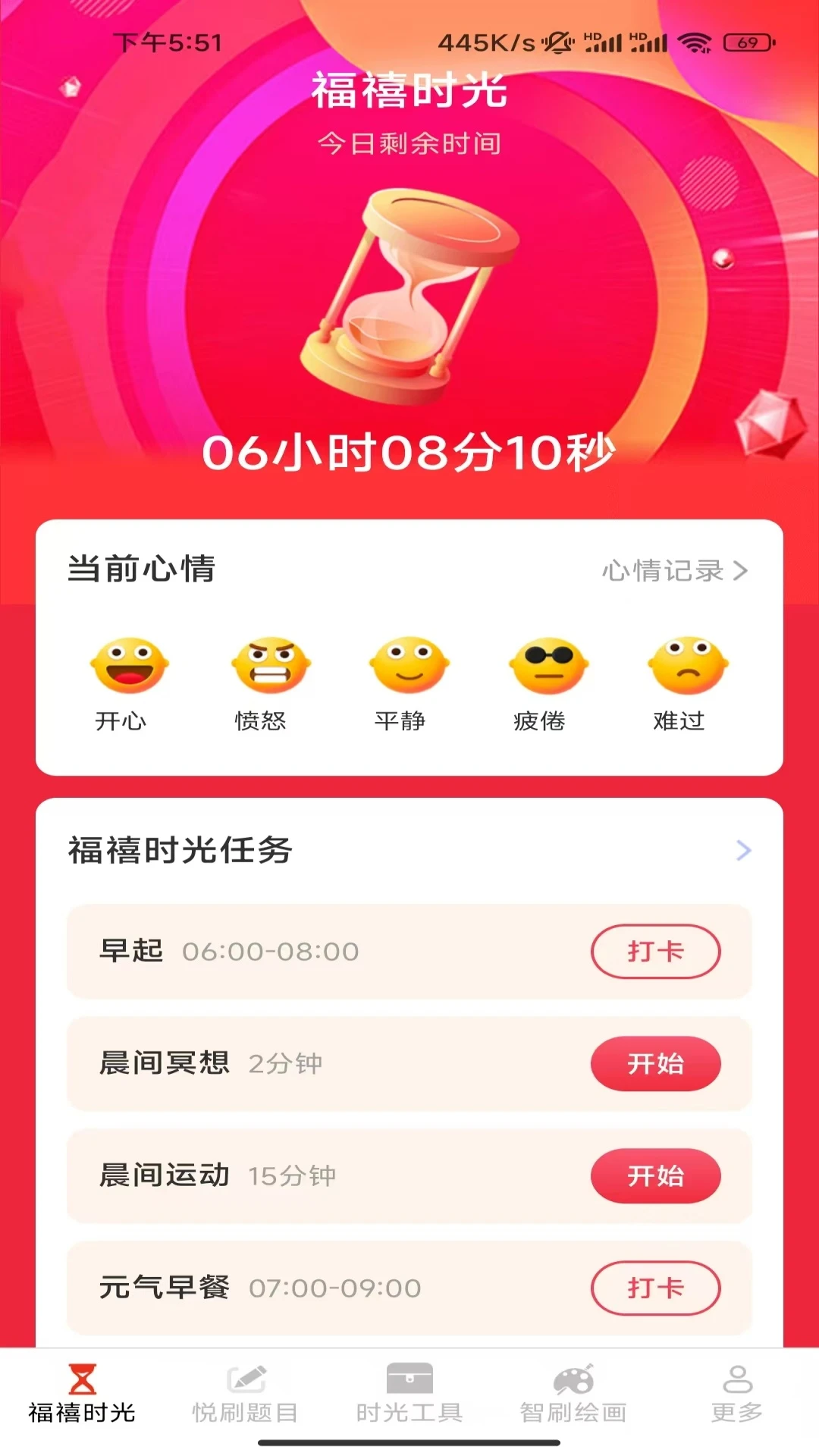悦刷时光,旨在为您提供丰富多样的内容体验。【福禧时光】帮您规划并享受每一天中的特别时刻。通过设定个性化的福禧时光任务,轻松进行日常打卡,培养良好习惯。还贴心地提供心情记录板块,在完成每项任务后,标注自己的心情状态。