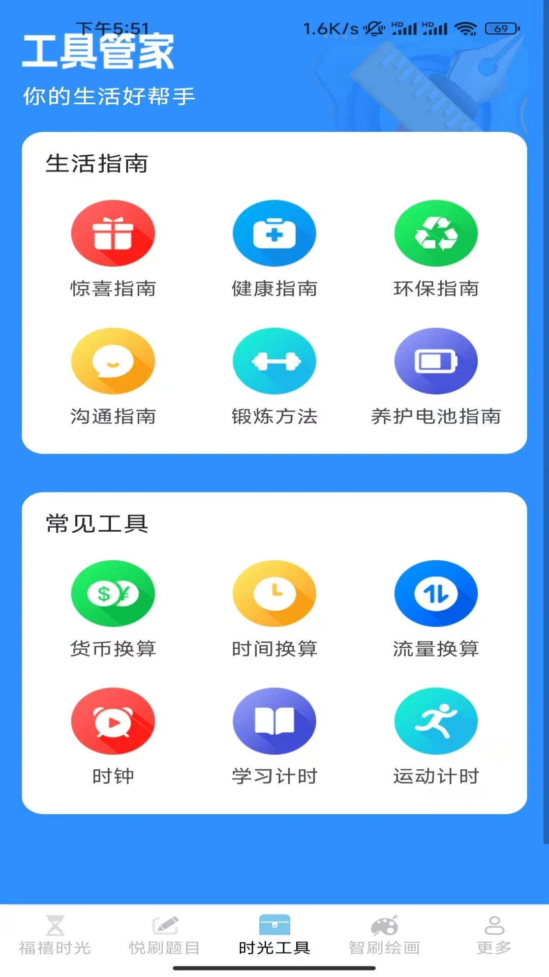 【时光工具】生活指南部分致力于为用户提供全方位的生活指导。而常见工具整合了一系列日常生活中必不可少的实用小工具,极大地提升了生活与工作的便捷性。