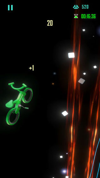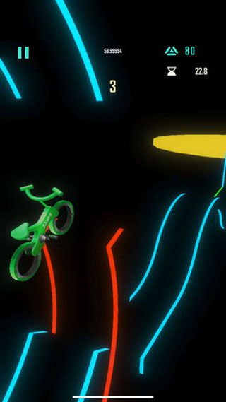 玩家只需通过单指操作就能控制车辆加速或跳跃,在躲避障碍物的同时,尽可能多地完成空中翻滚动作来获取高分