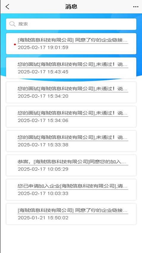 强大的搜索功能支持关键词检索,用户可快速查找历史消息、面试记录或企业信息。无论是查找特定岗位的面试通知,还是回顾过往沟通记录,都能通过搜索功能轻松实现,大幅提升信息获取效率。