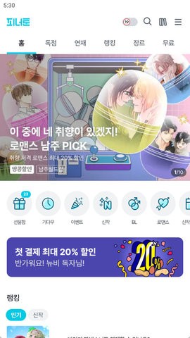 peanutoon正版app集成了漫画社区、一键分享和智能搜索等多项实用功能,为用户打造全方位的漫画阅读体验。在社区中,用户可以交流阅读心得,结识同好;一键分享功能支持将精彩内容快速传播到社交平台;而强大的搜索系统则能精准定位目标作品。