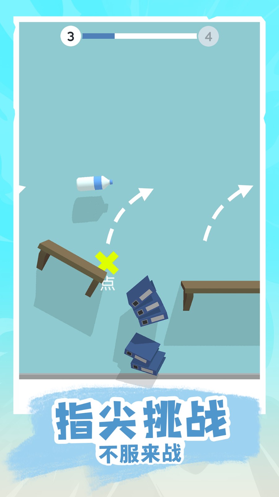 看准时机连续点击让瓶子往前蹦,跳太高会摔,跳太低又过不去。连续跳跃时要注意观察瓶子的飞行弧线,理想状态是形成连贯的抛物线。可以在设置中开启轨迹预测线,这能帮助判断下一次跳跃的落点位置。