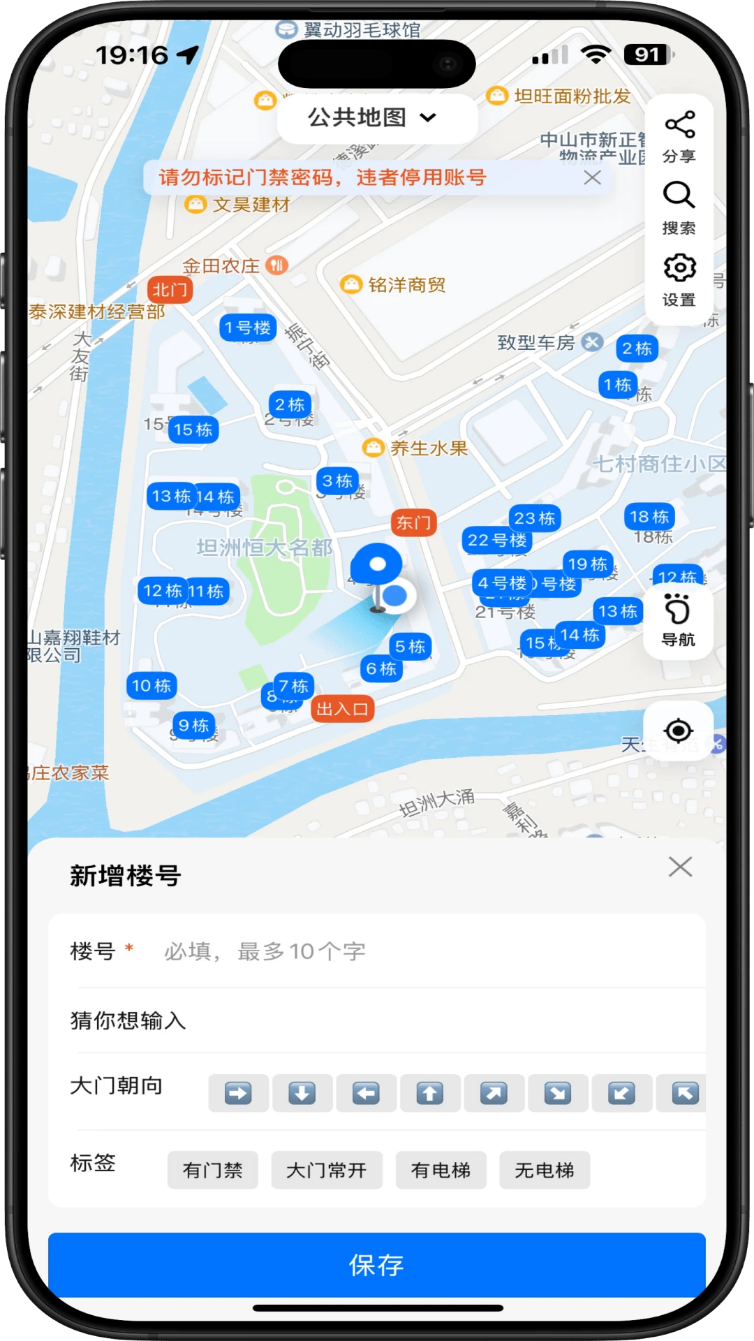 精准楼号标注:覆盖全国多个小区楼栋信息,支持小区搜索,一键找到目标楼号。