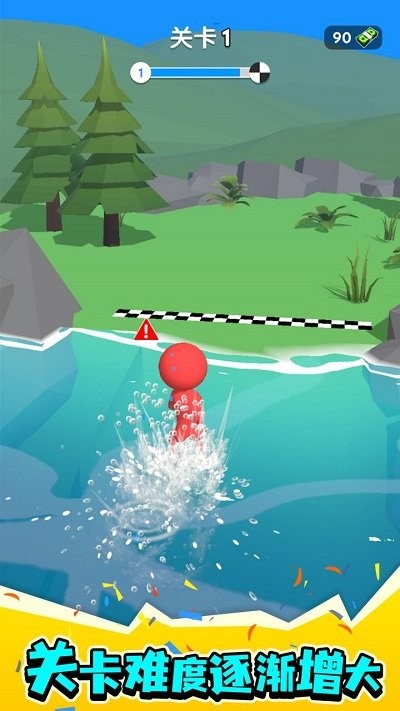 动态水面系统不仅真实模拟流体效果,还能根据角色重量和动作幅度产生差异化的水波互动,比如胖子角色落水时会激起更大浪花。15种特色障碍物包括会下沉的荷叶、旋转的风车踏板等,每种都需要玩家掌握独特的通过时机和技巧。4人实时对战模式加入了语音互动功能,玩家可以边比赛边交流,大大增强了社交竞技的趣味性。30多种个性化角色不仅外观各异,还拥有专属的胜利姿势和落水动画,部分稀有角色还能解锁隐藏特效。