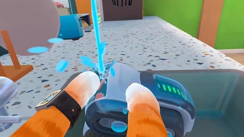 可以在游戏中推倒主人的电脑、机箱,对家中各种物品进行破坏。每种物品被破坏后都会产生不同的效果和动画,比如打翻花瓶会有水渍效果。捣乱程度越高,获得的奖励也越丰厚。