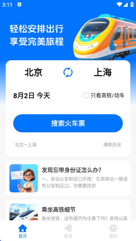 首页还提供坐车和购票相关知识,帮助用户了解最新常识。这些内容定期更新,包括购票技巧、退改签政策等实用信息,让用户掌握第一手出行资讯。