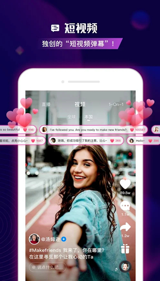15秒短视频创作功能,搭配专业级编辑工具,包含海量特效、贴纸和热门音乐素材,助您打造吸睛内容。开启弹幕互动功能,实时接收观众反馈。平台汇聚全球优质短视频内容,让您足不出户看遍世界。