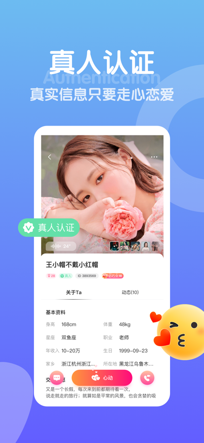 我们采用多重认证机制确保用户真实性:包括真人认证、实名认证等,打造安全可靠的交友环境,堪称年轻人的"脱单神器"。平台营造真诚友好的社交氛围,通过智能划卡匹配系统,让你能轻松找到志趣相投的朋友。我们还提供丰富的主题活动,包括兴趣小组、线上派对等,让你在参与活动的过程中自然结识新朋友。