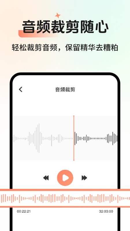 支持音频裁剪和拼接,用户可以根据需要自由调整音频内容,轻松打造个性化的音频片段并导出使用。