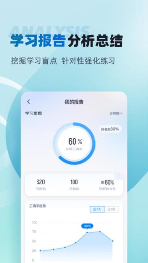 直观的数据报告,系统会生成详细的学习数据报告,包括正确率分析和答题历史,用户随时能了解自身学习进度。报告以图表形式呈现,让用户对学习情况一目了然。
