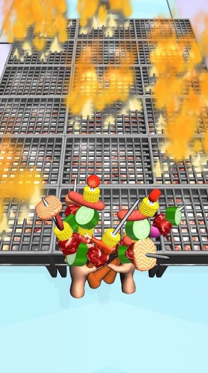 爽快感反馈:当连续穿过多个增益门后,烤架会进入爆发状态,速度和收集范围大幅提升。此时食材会如潮水般涌入桶内,配合动感的加速音效,带来极致的跑酷爽快感。这种强烈的正向反馈让玩家欲罢不能,不断追求更完美的表现。
