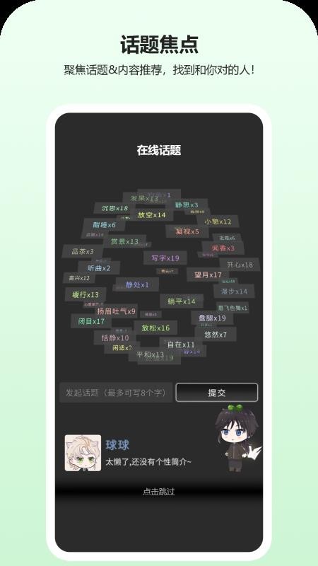 动字世界成功将虚拟形象技术与社交功能完美结合,为用户带来了前所未有的互动体验。其角色定制系统设计细致全面,能够满足用户对个性化形象的各种需求。智能推荐算法运行精准高效,能快速匹配到契合度高的聊天对象和话题内容。整体界面设计活泼生动,操作流程简单直观,即使是初次接触虚拟社交的用户也能轻松上手,充分享受数字化社交的乐趣。