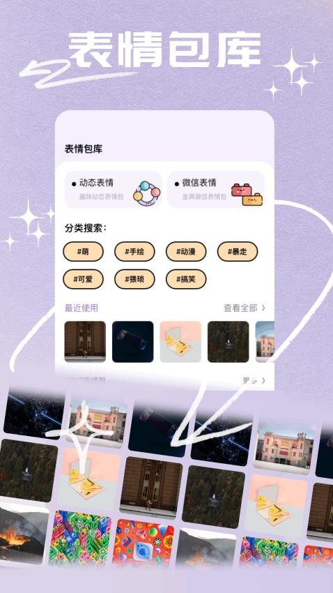 拥有超过10万+的表情包资源库,涵盖搞笑、可爱、萌宠、影视等多种类型,每天还会新增上百个最新热门表情,保证资源永不枯竭。