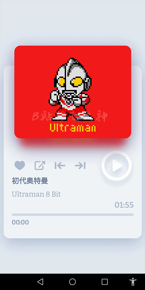 奥特曼8bit音乐盒的操作界面设计简洁明了,打开软件即可直接播放音乐。用户可以通过直观的箭头按钮轻松切换上一首或下一首曲目,还可以将喜欢的音乐免费下载到本地收藏。软件支持在线播放和离线收听两种模式,无论何时何地都能享受奥特曼音乐带来的热血与感动。特别值得一提的是,所有音乐都以8bit风格重新编曲,既保留了原曲的经典旋律,又增添了独特的复古游戏感,让老歌焕发新生。