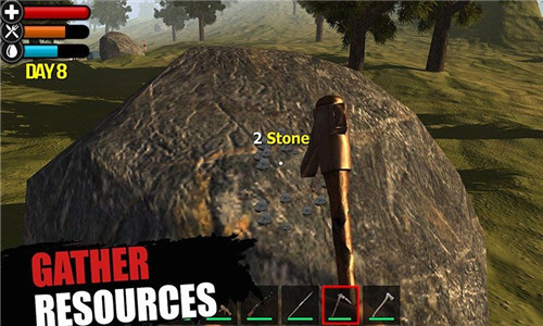 出生点附近必定刷新三个关键资源点:淡水泉、燧石矿和香蕉丛。建议先用匕首制作简易滤水器,燧石工具比木制工具效率提升300%,香蕉叶可临时替代绳索。