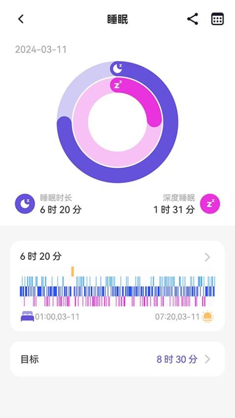 采用先进的睡眠监测算法,能够精准区分浅睡、深睡和REM睡眠阶段,提供详细的睡眠质量分析报告。通过长期数据积累,帮助您发现影响睡眠质量的关键因素,并给出针对性的改善建议。
