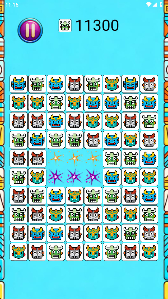 游戏开始后,玩家将进入一个由各种神秘图腾组成的方块矩阵。通过点击选择任意一个方块,然后向上下左右四个方向滑动,即可与相邻的方块交换位置。当三个或更多相同图腾在横向或纵向上连成一线时,就会触发消除效果。消除的图腾数量越多,获得的分数加成越高。