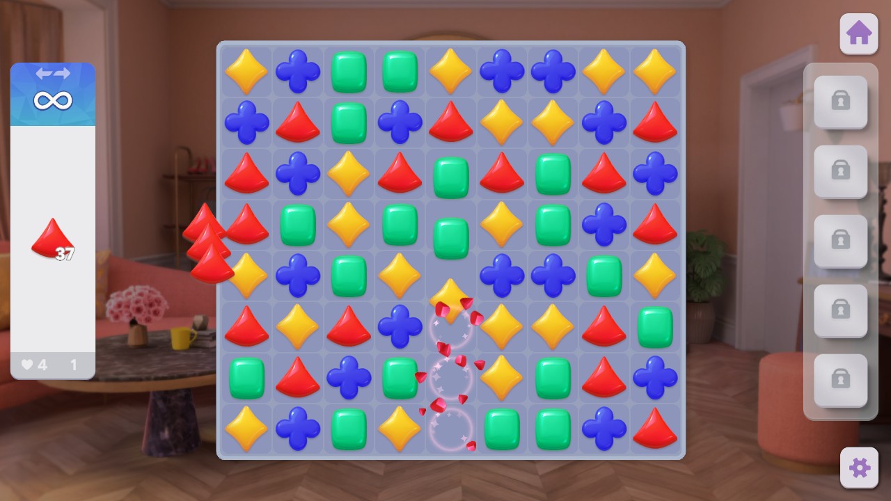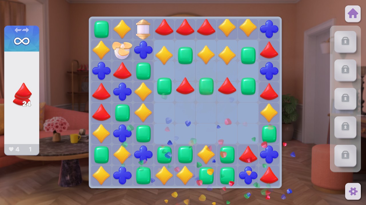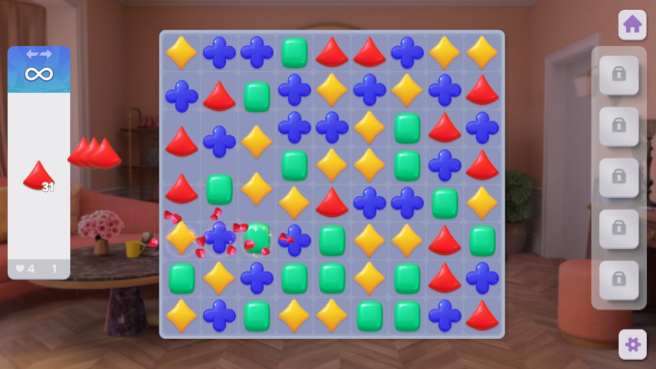 三消玩法加入了多种创新元素,连锁消除可以积累能量释放全屏技能。不同关卡有各自的目标要求,有的需要收集指定道具,有的则要在限定步数内达成特定分数,需要玩家灵活调整策略。