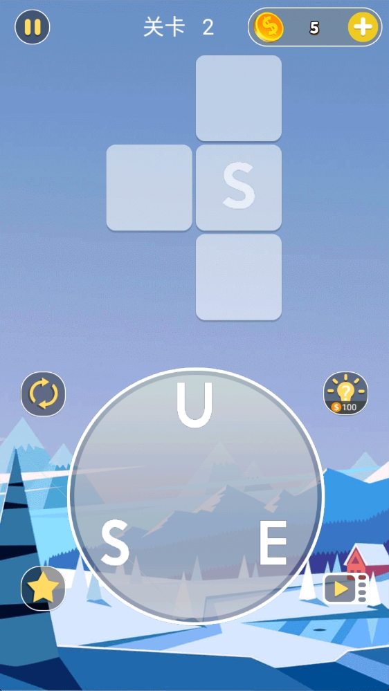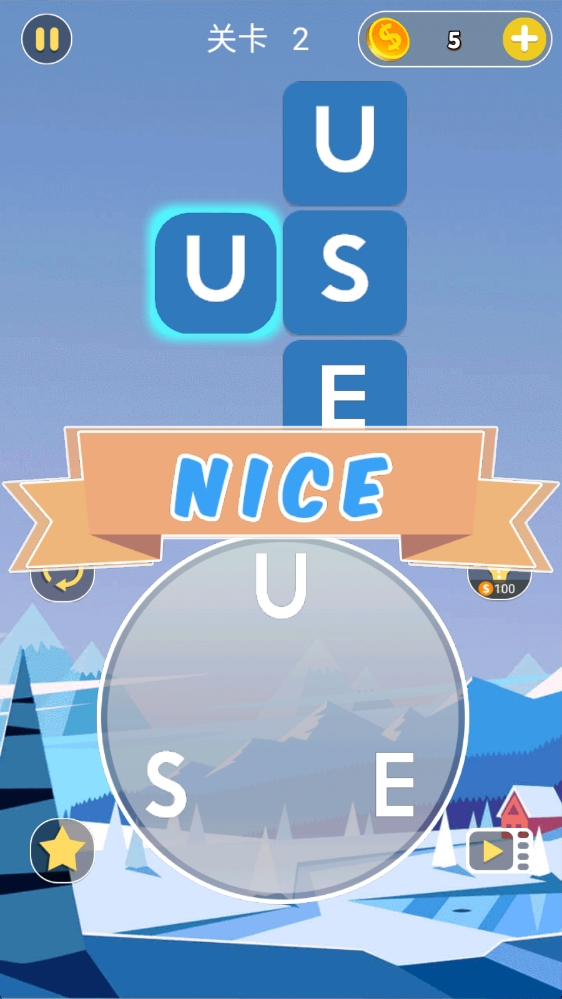 启动界面设计简洁大方,醒目的黄色三角形按钮引导玩家开启单词挑战之旅。点击按钮后,系统会播放欢快的音效,为游戏体验增添更多乐趣。进入游戏后,玩家将看到精心设计的关卡选择界面,这里按照难度分为丘陵、平原等多种场景主题,每个主题都配有独特的背景插画。选择关卡时,系统会显示该关卡的单词长度提示,帮助玩家评估难度。在关卡1的游戏界面中,玩家需要仔细观察字母排列,通过手指滑动将字母S、H、E依次连接,组成单词SHE。连线成功后,系统会播放鼓励音效并展示单词释义,让玩家在游戏过程中也能学习新知识。