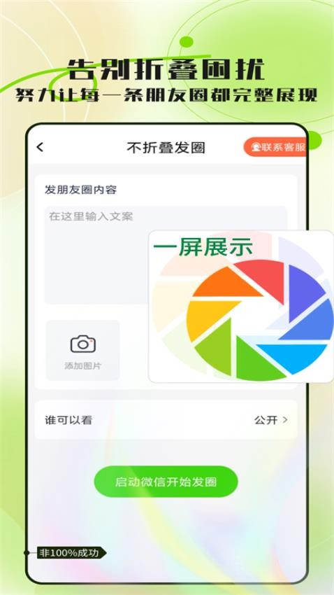 创新性地解决了朋友圈内容被折叠的问题,确保您的每一条动态都能完整展示。支持多图长文同时发布,让朋友圈内容更具吸引力,提升互动效果。
