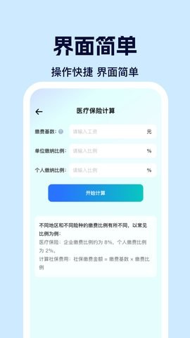 社保电子计算助手app主要为用户提供了社保助手,这里多种计算器工具都可让你任意选择使用,轻松实现社保计算,智能计算相关的医疗费用,让你享受便捷服务;而且用户也可以对相关的医保政策进行查询,专业实现医保问答,获取更多的政策知识。应用界面设计人性化,操作流程简单明了,即使是初次使用社保服务的用户也能快速上手。数据安全保障措施完善,确保用户隐私信息不被泄露,是值得信赖的社保管理工具。