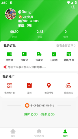 详细的账户余额、佣金和积分数据,便于用户能合理的规划,日常购物消费更省钱,支持多种充值方式和余额提现功能;