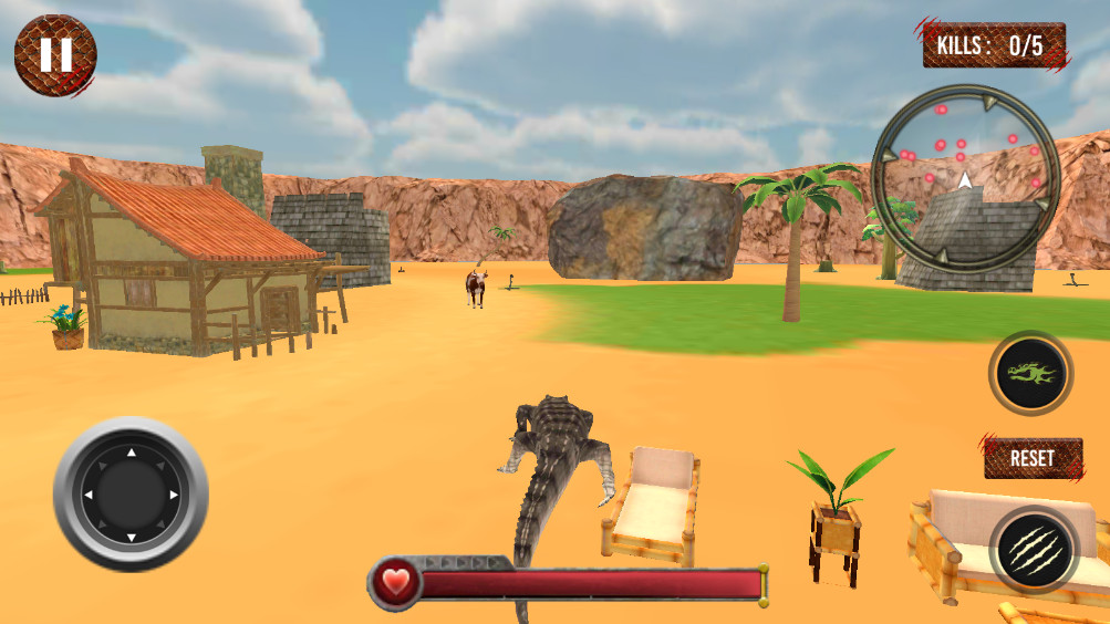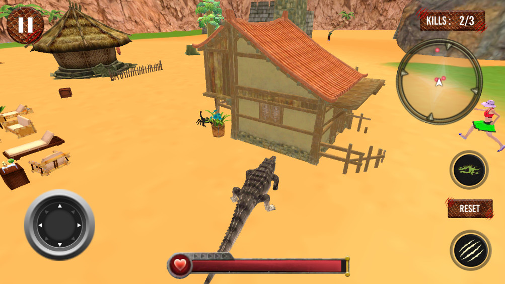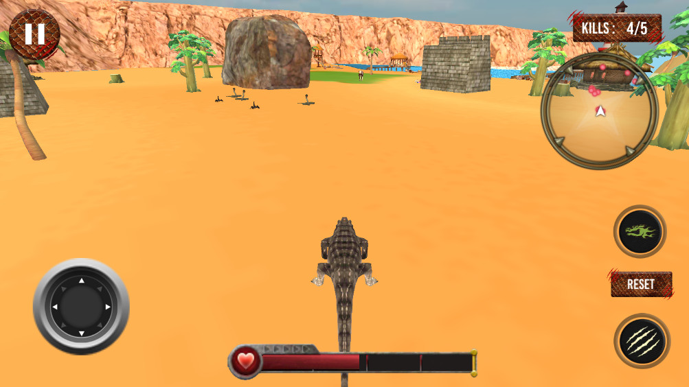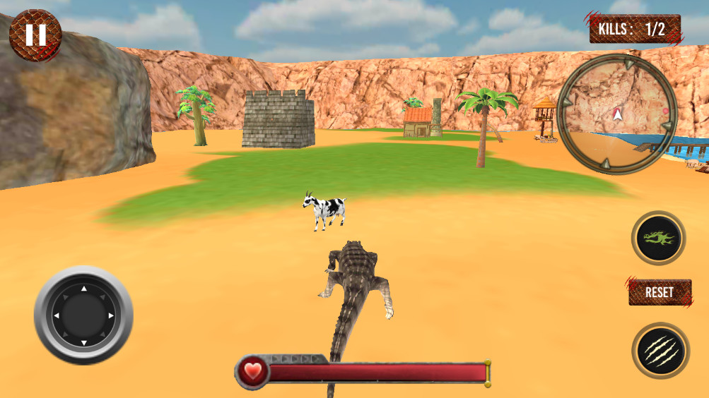 移动你的鳄鱼,完成任务即可前往下一关。按住加速键可发动短途冲刺,长按则会消耗体力槽。当饥饿值降至警戒线时,必须及时捕食恢复状态,否则会进入虚弱状态。